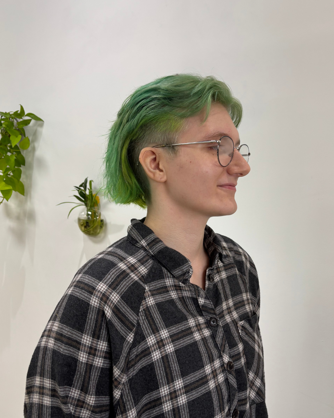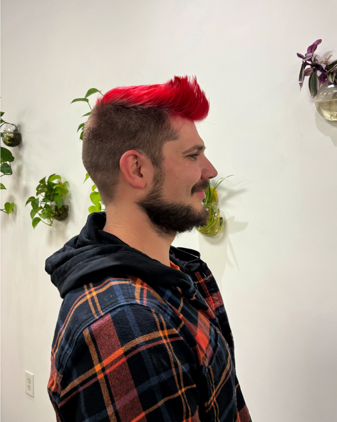 Inspired by goth culture, street style, and alternative fashion, Claire’s aesthetic leans bold and expressive while staying approachable and wearable. When not behind the chair, you’ll likely find her rock climbing, painting, experimenting with new makeup looks, or hanging out with her cat. A seasoned traveler who’s visited nearly all 50 states (and even ventured abroad), Claire brings a broad creative perspective and open-minded spirit to every appointment.